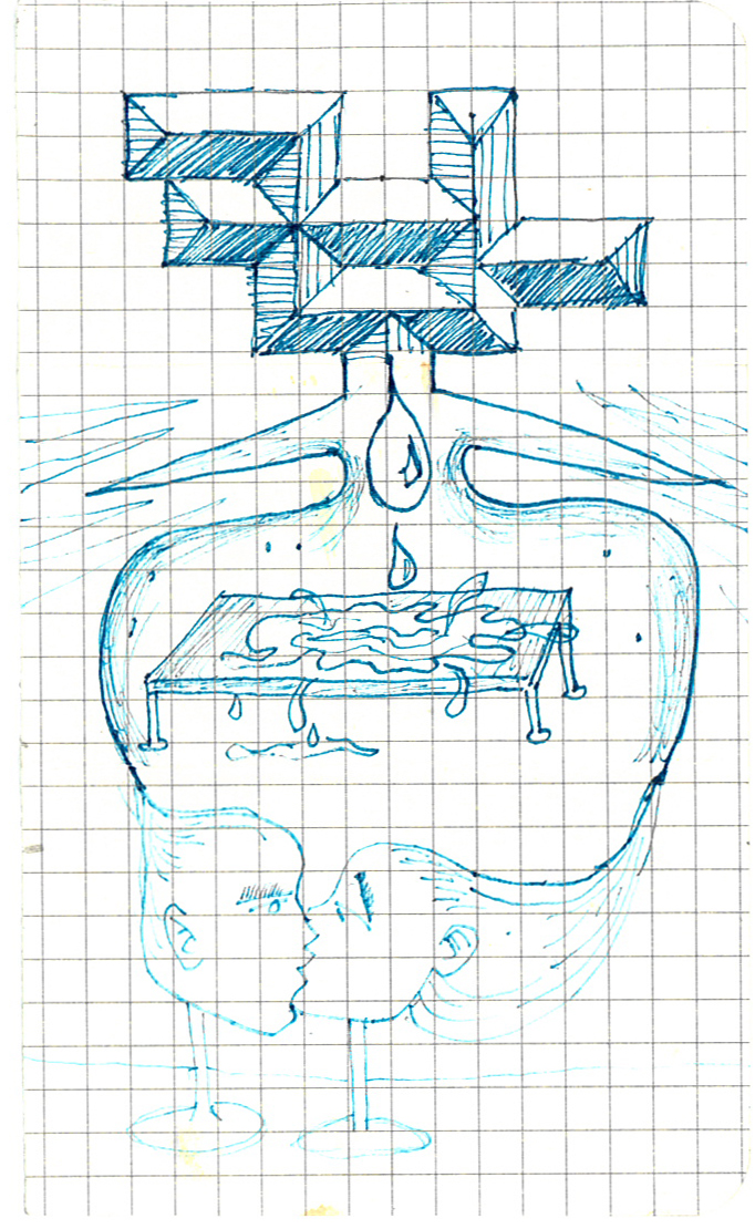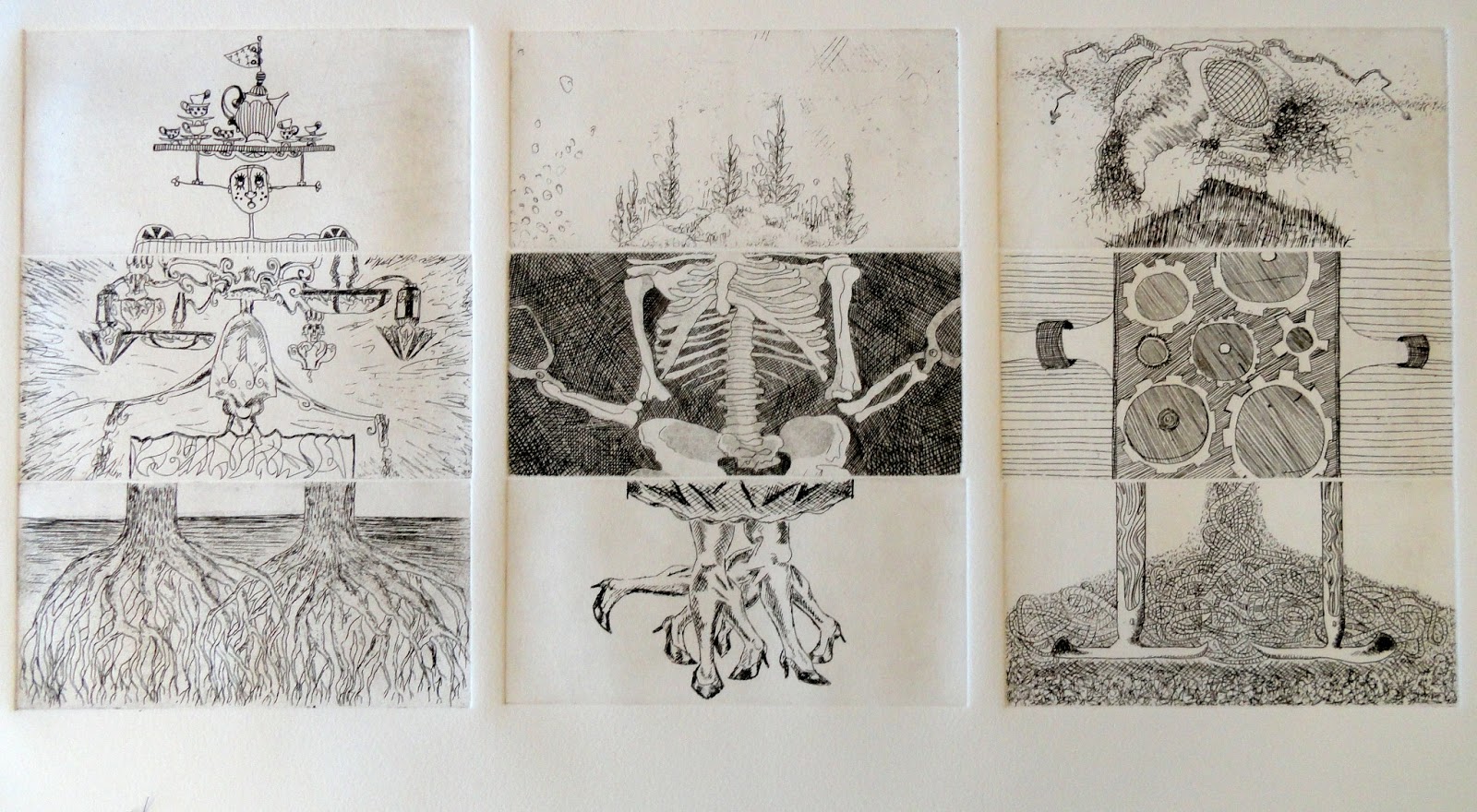 I’ve included a preview of the cover and first few pages. I approached it mostly as an automatic exercise and decided to keep it in the spirit of the exquisite corpse, by continuing lines from page to page, at least for the most part. Sometimes I’d work page to page, others were doodles that grew and I found myself working out transitions, sometimes imagery or collage material would spark a page and as you’ll see, sometimes there appears to be no link at all. I’m still not sure if these areas of non-continuity (nontinuity?) actually exist. I scanned the book, but seem to remember adding a few things just before slipping it in the mail.