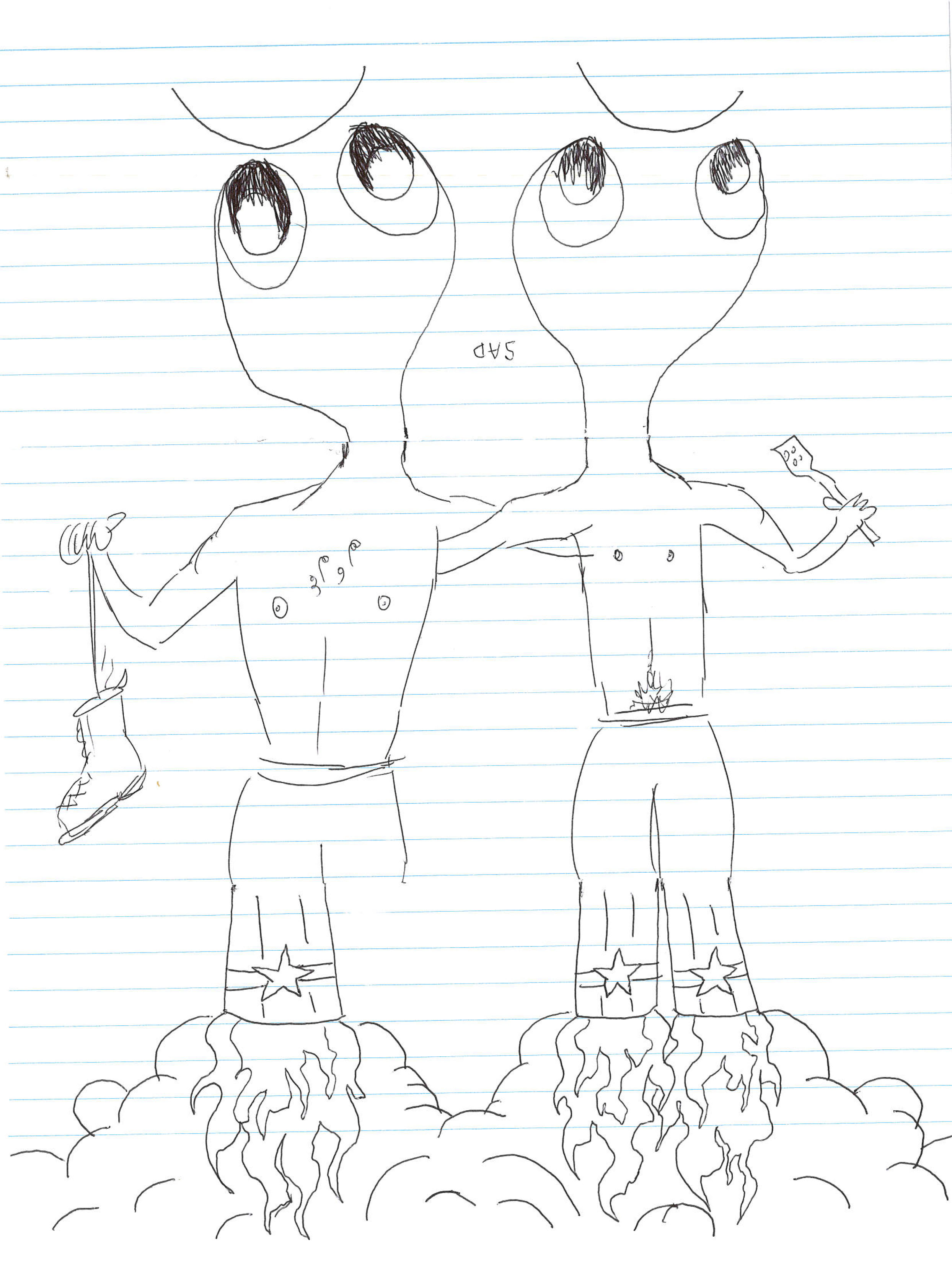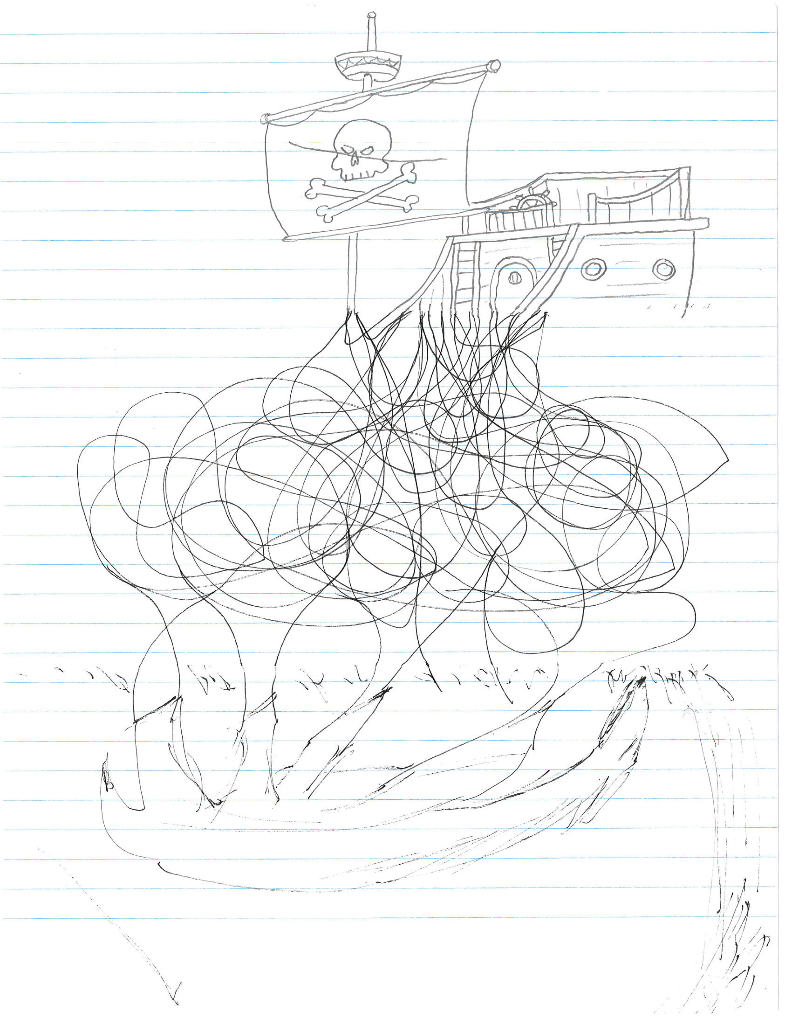 I’ve mentioned before how drawings and methods in doing corpses maintains a certain routine. Once in a while, we get new people joining in and something has to be explained and then new ideas or approaches come up. There is a default method that repeats itself. Fold the paper in three. Begin at the top or bottom and pass on. In this case, we somehow decided to fold the paper in triangles and random patterns. This comes up with some interesting flow and allows more than three people to participate (something we’ve done before). The next few corpses were done this way. Some more intricate than others. No origami forms yet, but that can’t be far off.