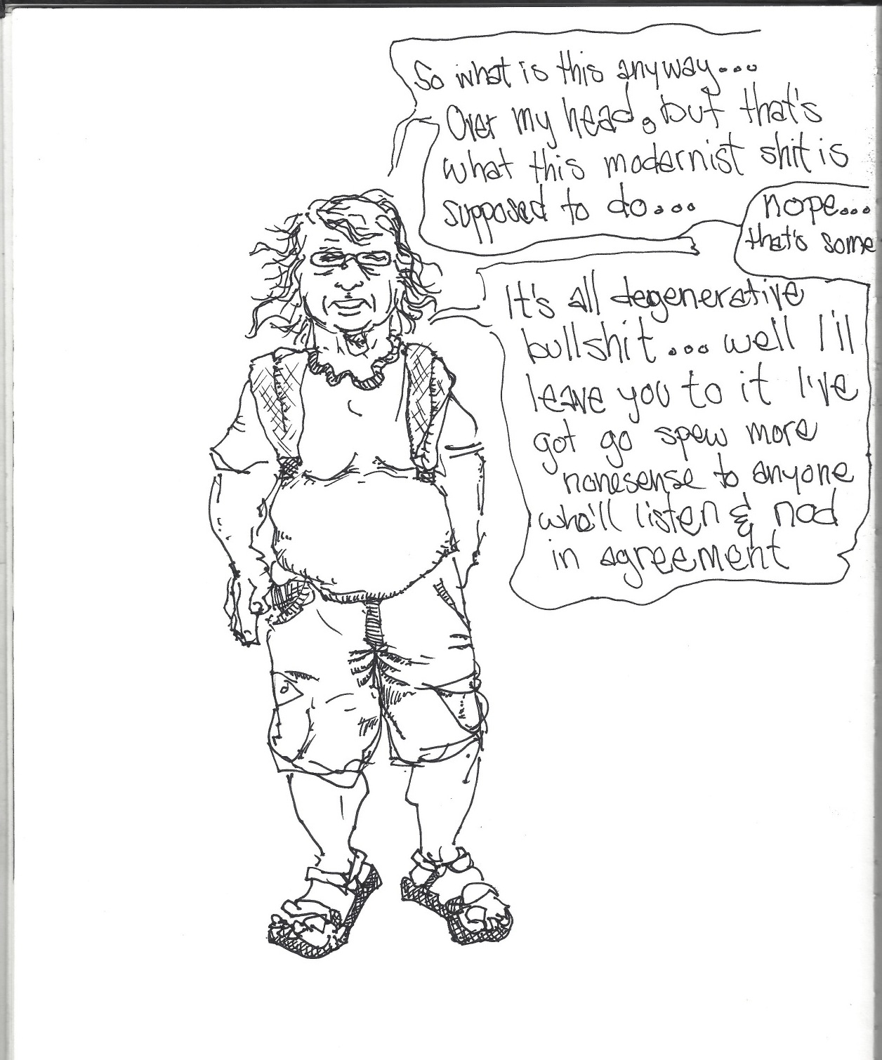 So, I had a visitor drop in the other day. I heard him coming about an hour before he walked in the door. He was spouting off to someone in the space next door about conspiracy theories or his intelligence about how the world is run and who has the money and how he laughs everytime he hears that Bill Gates is one of the richest people in the world and how little people know about who has the wealth in the world and he knows there are a select number of individuals who have 10 times the wealth of Bill Gates and in fact I had lunch with one of them because a friend of mine knows who is in charge of the global economy and we had lunch together in a fancy restaurant but that was back in the 80s and if only I knew then what I know now and all I need is $5,000,000 for start up and I can turn that over 10 times with no R & D because that’s where all the money gets drained and I had a chance to do this before and I took it to the Japanese but none of them spoke English so they didn’t understand and said my ideas were irrelevant and they don’t know what they rejected.