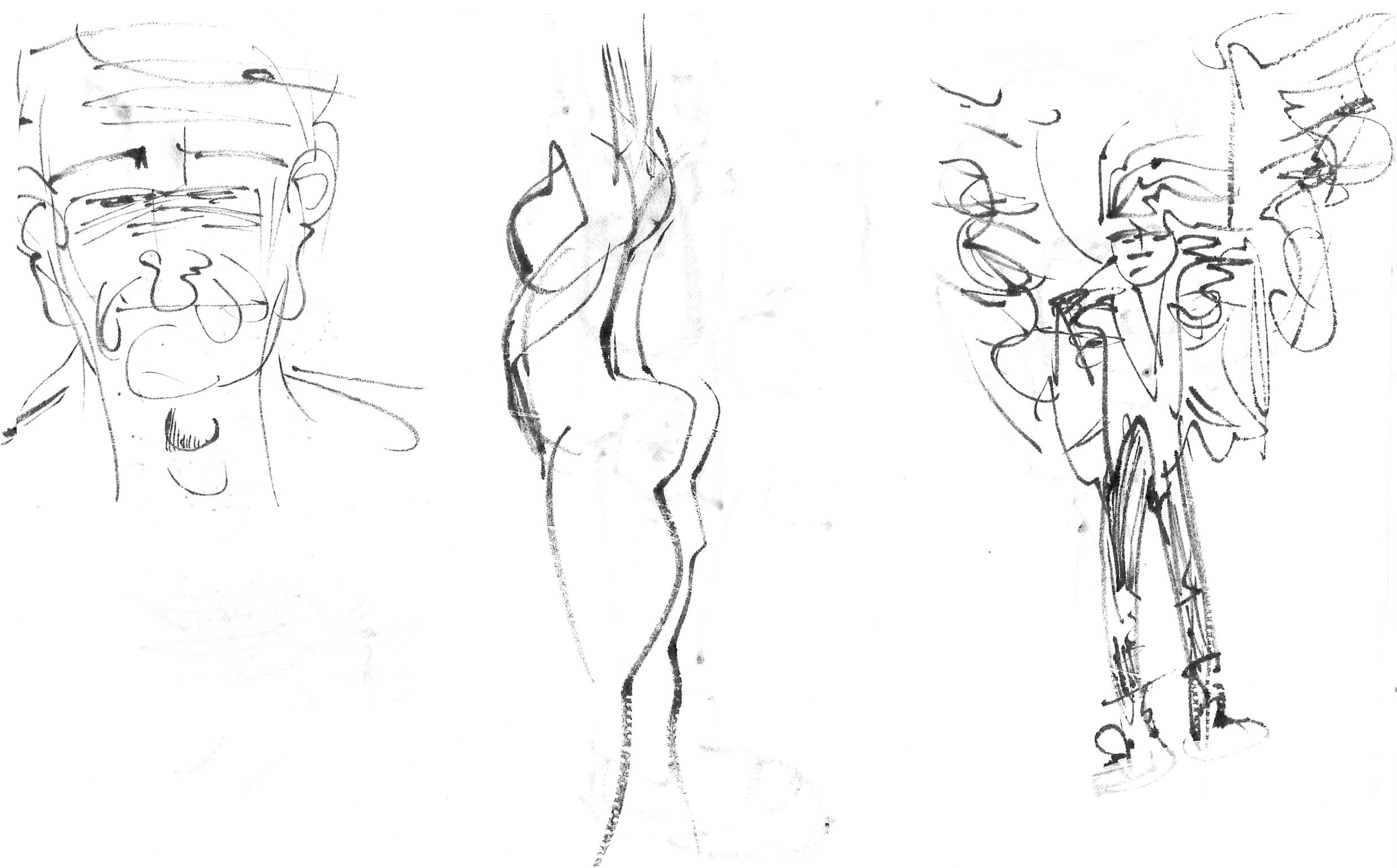 Not quite corpses. 4 sides of a napkin folded over passed along and drawed on.